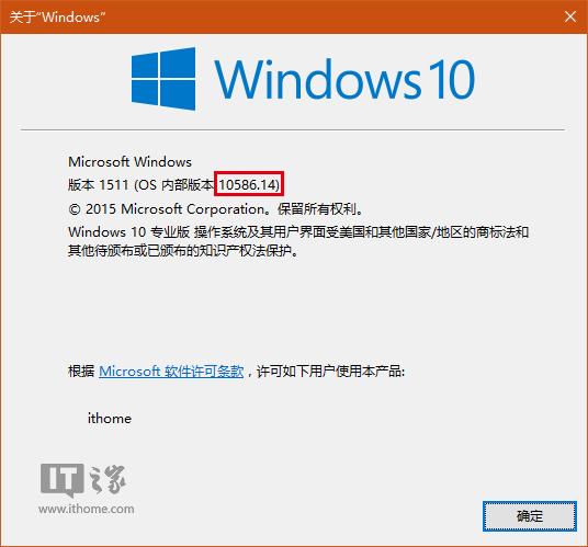 ▲升級(jí)后 不僅如此,微軟重新上線了Windows10《介質(zhì)創(chuàng)建工具》的TH2正式版鏡像下載,一些在第一時(shí)間下載安裝新ISO版本系統(tǒng)的用戶也發(fā)現(xiàn),系統(tǒng)版本號(hào)已經(jīng)不是之前的內(nèi)容了,而是升級(jí)到了10586.14。
