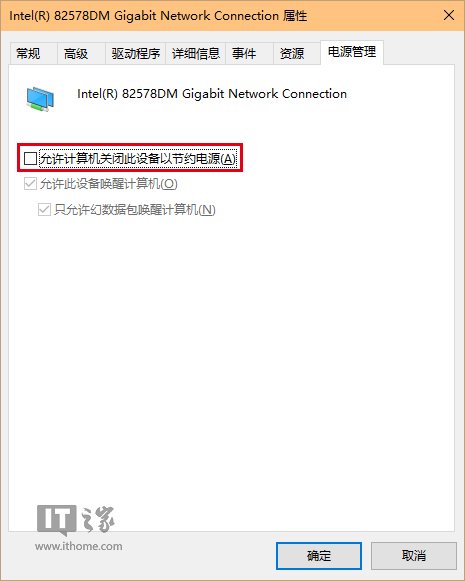 3、點擊“電源管理”選項卡,取消勾選“允許計算機關(guān)閉此設(shè)備以節(jié)約電源”后點擊確定,如下圖——