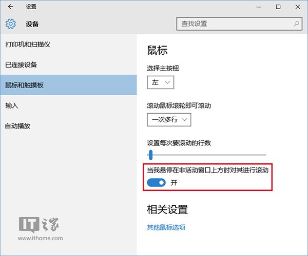 Windows 10是美國微軟公司研發(fā)的跨平臺(tái)及設(shè)備應(yīng)用的操作系統(tǒng)。是微軟發(fā)布的最后一個(gè)獨(dú)立Windows版本。Windows 10共有7個(gè)發(fā)行版本,分別面向不同用戶和設(shè)備。2014年10月1日,微軟在舊金山召開新品發(fā)布會(huì),對(duì)外展示了新一代Windows操作系統(tǒng),將它命名為“Windows 10”,新系統(tǒng)的名稱跳過了這個(gè)數(shù)字“9”。截止至2018年3月7日,Windows 10正式版已更新至秋季創(chuàng)意者10.0.16299.309版本,預(yù)覽版已更新至春季創(chuàng)意者10.0.17120版本 很多經(jīng)常關(guān)注深度技術(shù)官網(wǎng)的朋友對(duì)Win10都很了解,因?yàn)榇蠹叶家娮C了這款系統(tǒng)的成長。不過,就算是我們?cè)偈熘娜嘶蚴挛铮部隙ǘ加胁粸槿酥囊幻妫琖indows10也不例外。除了微軟經(jīng)常宣傳的各種新功能以外,這款系統(tǒng)還有一些很實(shí)用的功能一直“安靜”地工作著。也許你們至今素未謀面,也許你們已經(jīng)親如家人。外媒總結(jié)了Win10系統(tǒng)的十大隱藏功能,我們看看是否熟悉。 1、非活動(dòng)窗口鼠標(biāo)滾動(dòng)效果 這項(xiàng)功能可以讓你在非活動(dòng)窗口上使用鼠標(biāo)滾輪的滾動(dòng)翻頁功能。如此一來,你可以不必點(diǎn)擊需要滾動(dòng)的非活動(dòng)窗口,但可以對(duì)其頁面內(nèi)容進(jìn)行滾動(dòng)翻頁操作。該功能在某些第三方軟件中已經(jīng)實(shí)現(xiàn),現(xiàn)在微軟正式在設(shè)置中加入該功能的調(diào)節(jié)開關(guān),非常方便。