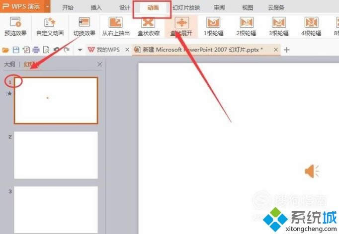 Windows XP是美國微軟公司研發的基于X86、X64架構的PC和平板電腦使用的操作系統,于2001年8月24日發布RTM版本,并于2001年10月25日開始零售。其名字中“XP”的意思來自英文中的“體驗(Experience)”。該系統是繼Windows 2000及Windows ME之后的下一代Windows操作系統,也是微軟首個面向消費者且使用Windows NT5.1架構的操作系統。 Microsoft Office PowerPoint是我們經常會使用到的一款辦公軟件。最近一位xp系統用戶反饋自己為了更加方便的查看ppt,就希望能夠自己設置每張PPT的停留時間,就是等時間一到之后,自動演示下一張PPT,避免使用鼠標操作。那么,這該如何操作呢?接下來,就隨小編一起看看xp系統設置每張PPT/幻燈片停留時間的方法! 具體如下: 1、動畫 打開PPT軟件,新建幾張PPT頁面,然后用鼠標選中第一張頁面,再將選項卡切換到【動畫】,如下圖所示: